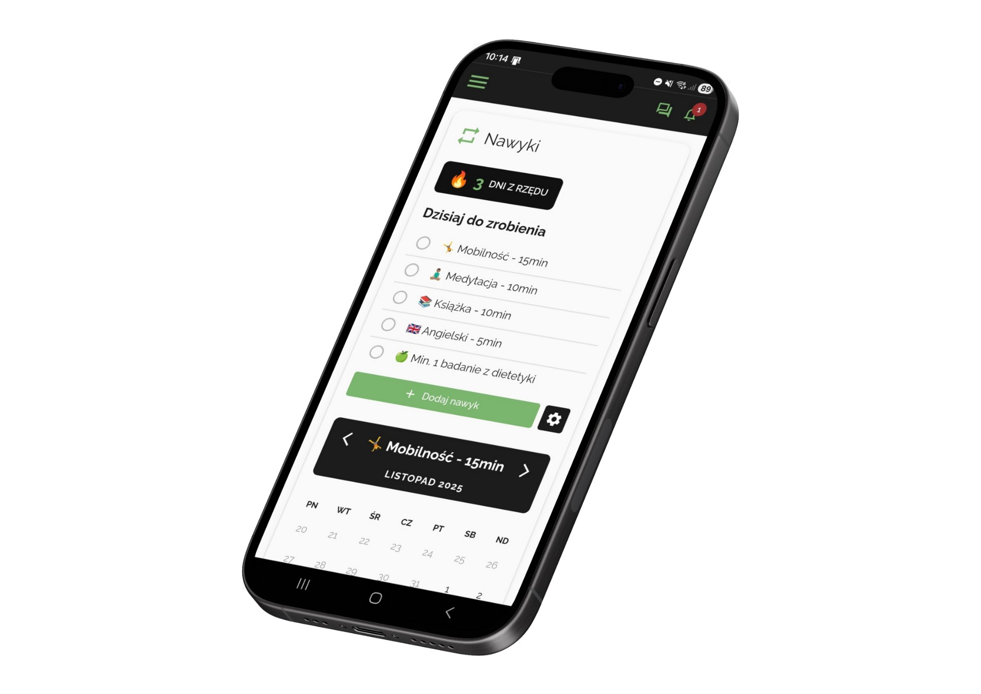 ✔Funkcje Aplikacji: Dziennik nawyków, cele i monitoring zdrowia.